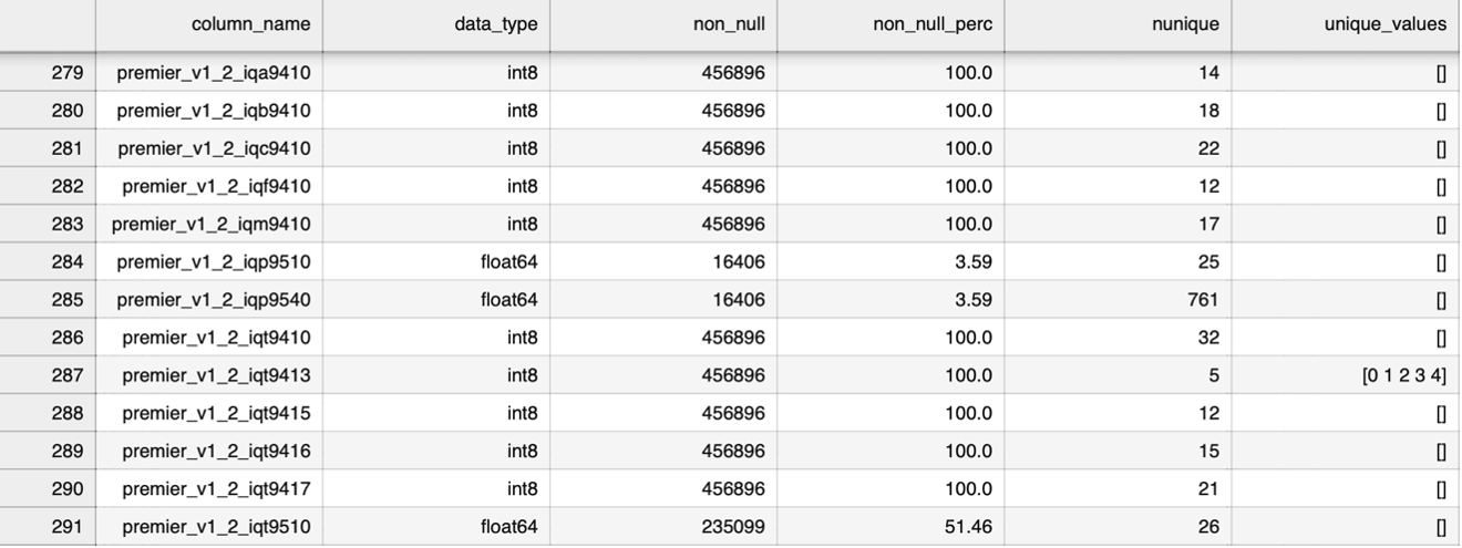 Note: We used a benchmark where we aimed for a minimum of 75% availability of the selected features in the 'Premier_75pct.csv' document.