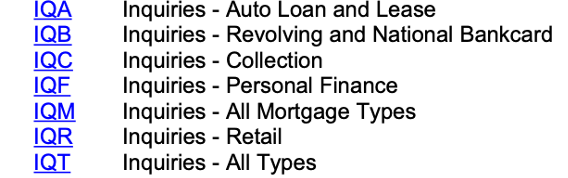 IQBbankcard revolving and charge inquiries